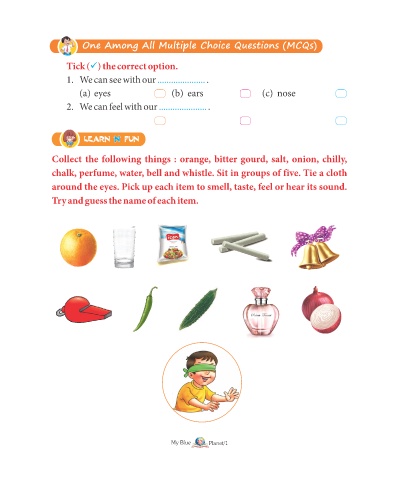 around the eyes. Pick up each item to smell, taste, feel or hear its sound.
