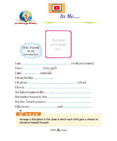 Its Me.....ts Me.....ts Me..... 1 1 1 I I Teaching Tech Teaching Tech Arrange a discussion in the class in which each child gets a chance to tell about himself/herself. My Blue 5 5 5 Planet/1