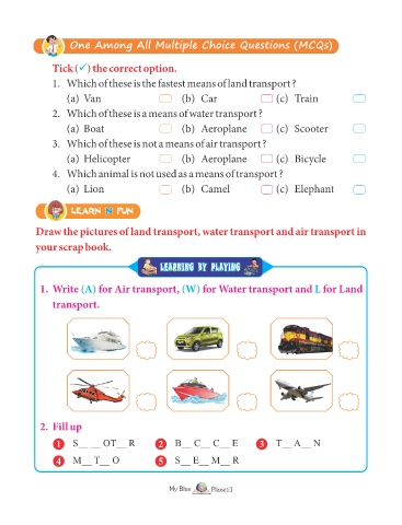 1. Write (A) for Air transport, (W) for Water transport and for Land L