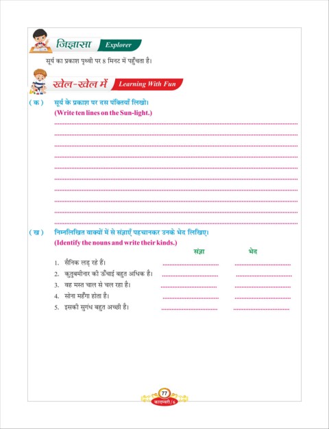 (Write ten lines on the Sun-light.)