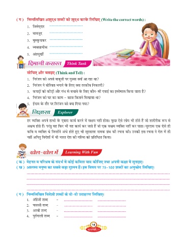 (x) fuEufyf[kr v'kqn~/ 'kCnksa dks 'kqn~/ djosQ fyf[k, (Write the correct words) :