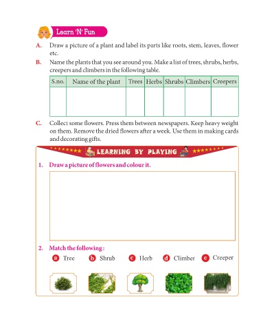B. Name the plants that you see around you. Make a list of trees, shrubs, herbs,